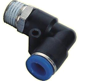 Złączka kątowa wtykowa z gwintem. Przyłącze 1/4. Wąż 8mm.